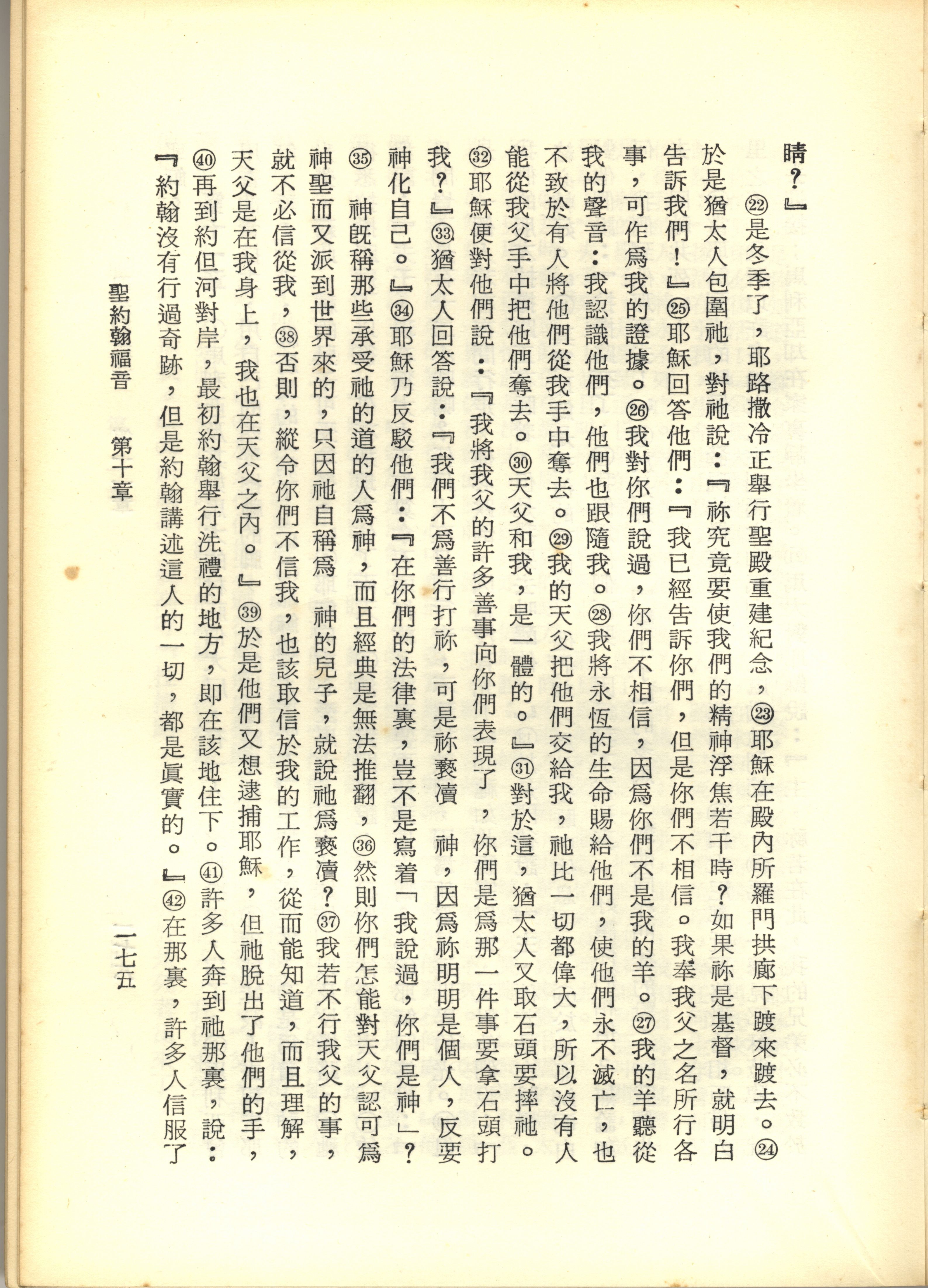 1967年新譯新約全集 約翰福音 10 章 22 節到 10 章 42 節
