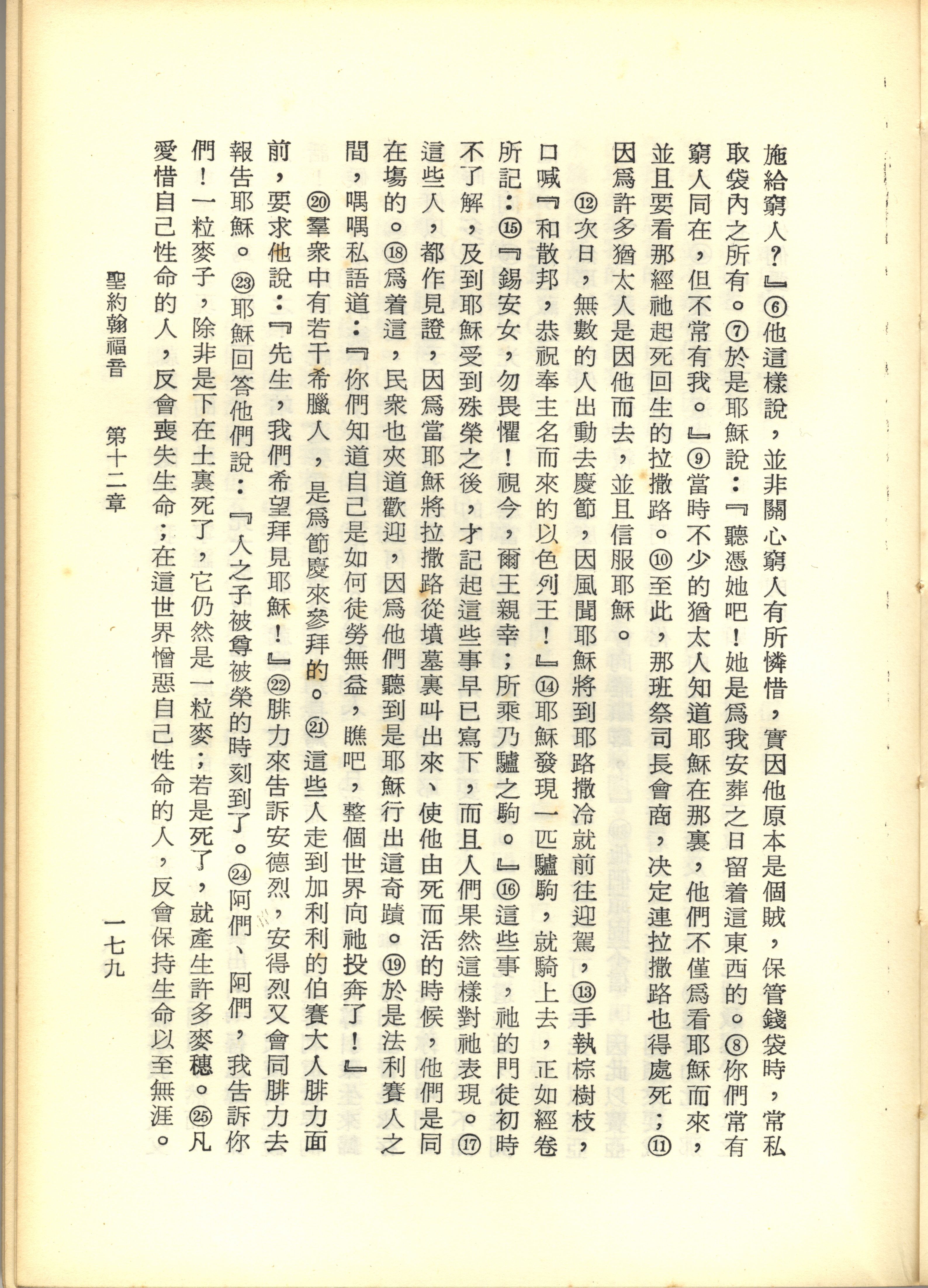 1967年新譯新約全集 約翰福音 12 章 6 節到 12 章 25 節