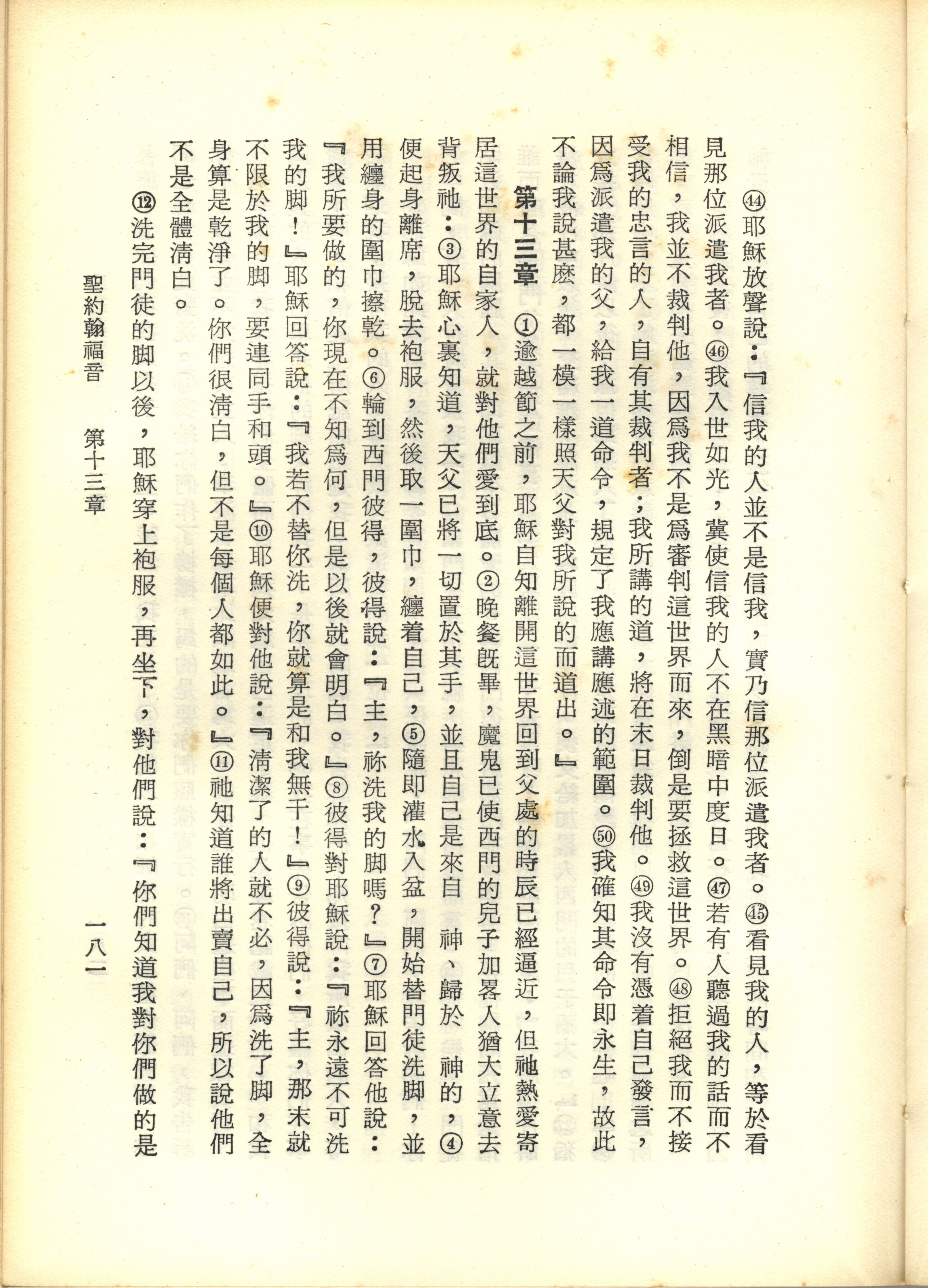 1967年新譯新約全集 約翰福音 12 章 44 節到 13 章 12 節