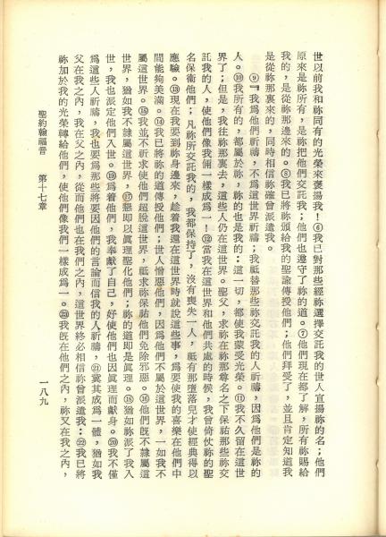 1967年新譯新約全集 約翰福音 17 章 6 節到 17 章 23 節