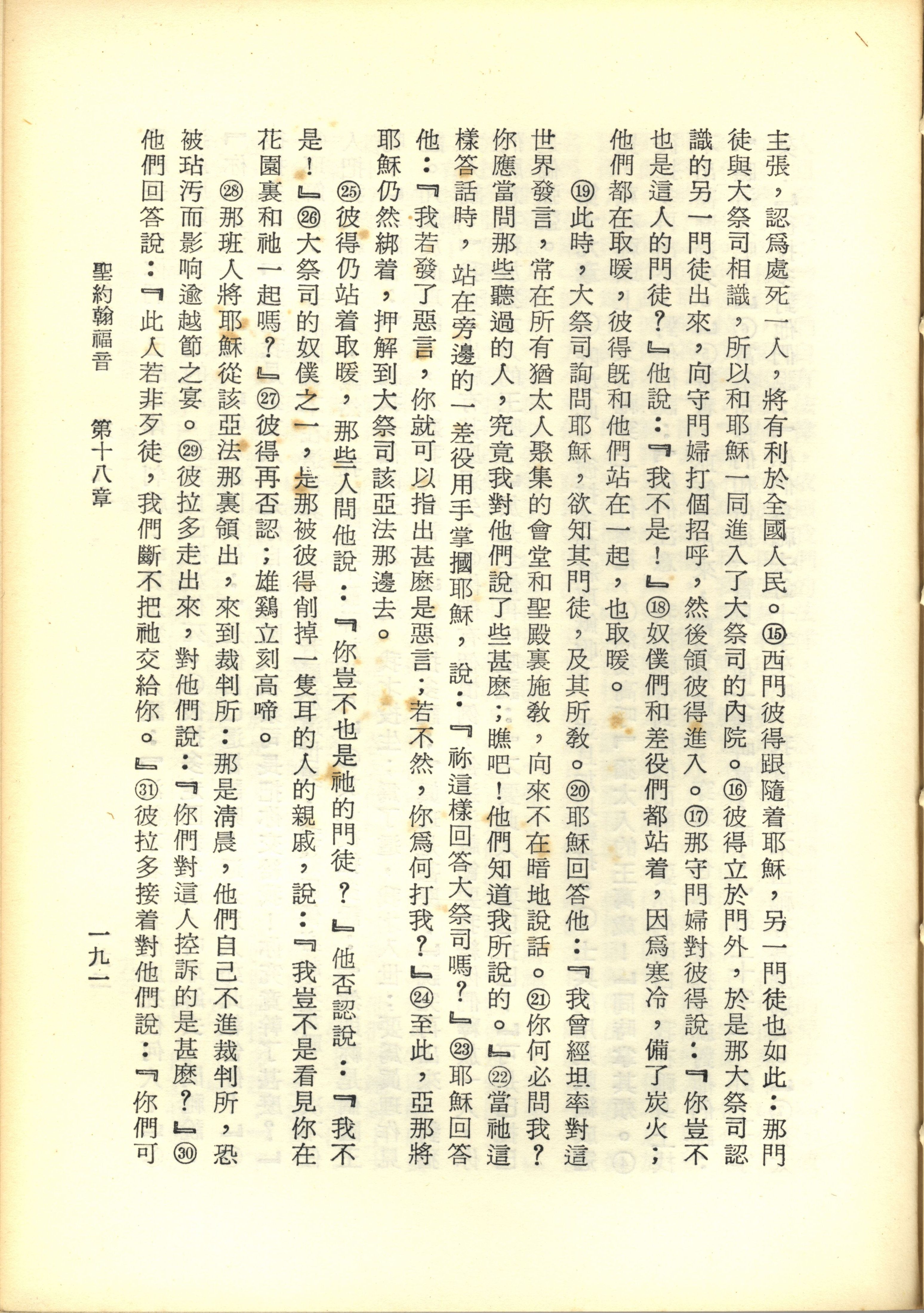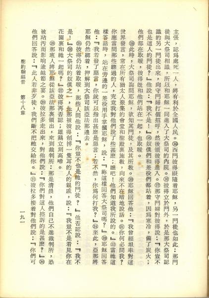 1967年新譯新約全集 約翰福音 18 章 15 節到 18 章 31 節