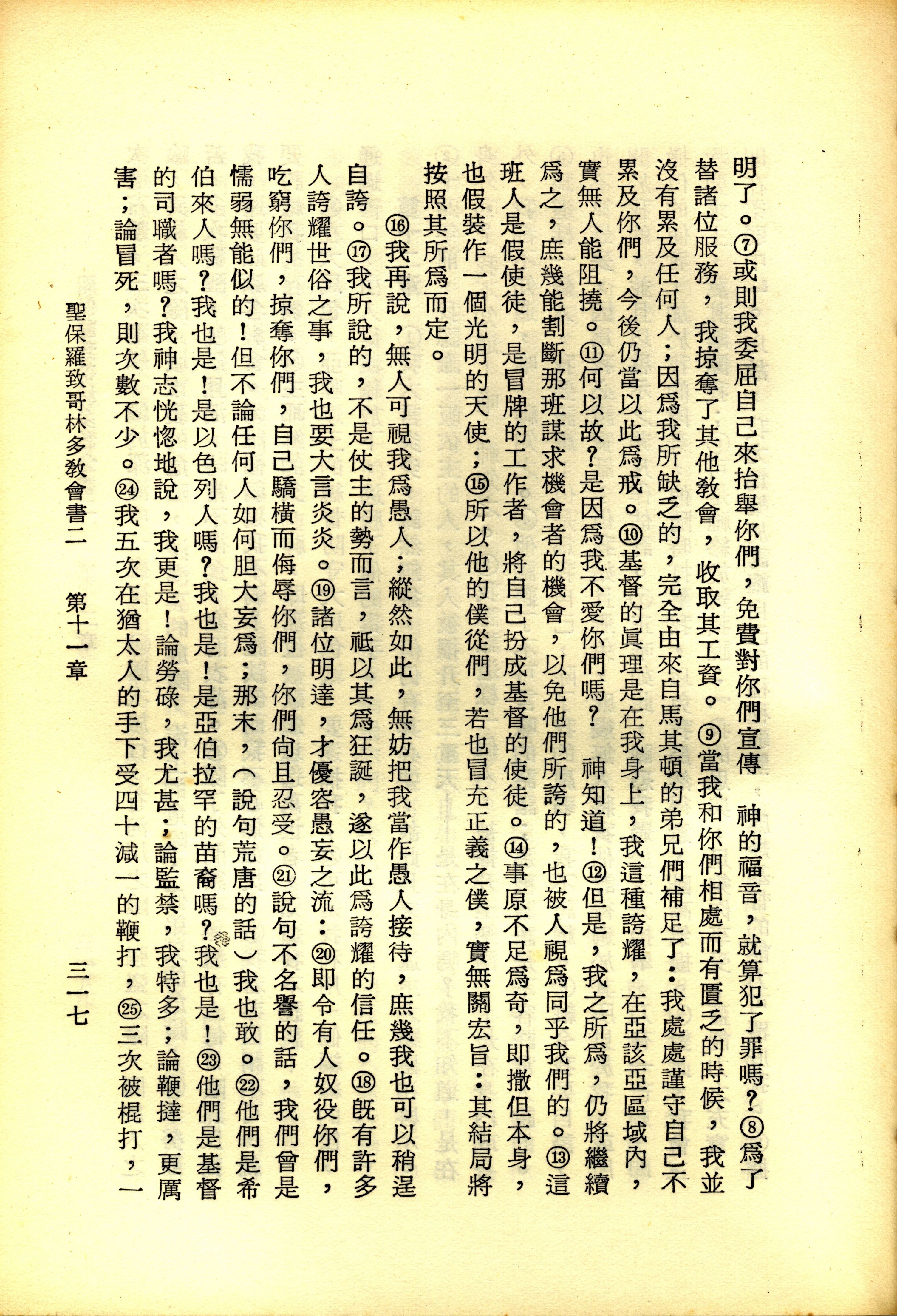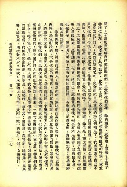 1967年新譯新約全集 哥林多後書 11 章 7 節到 11 章 25 節