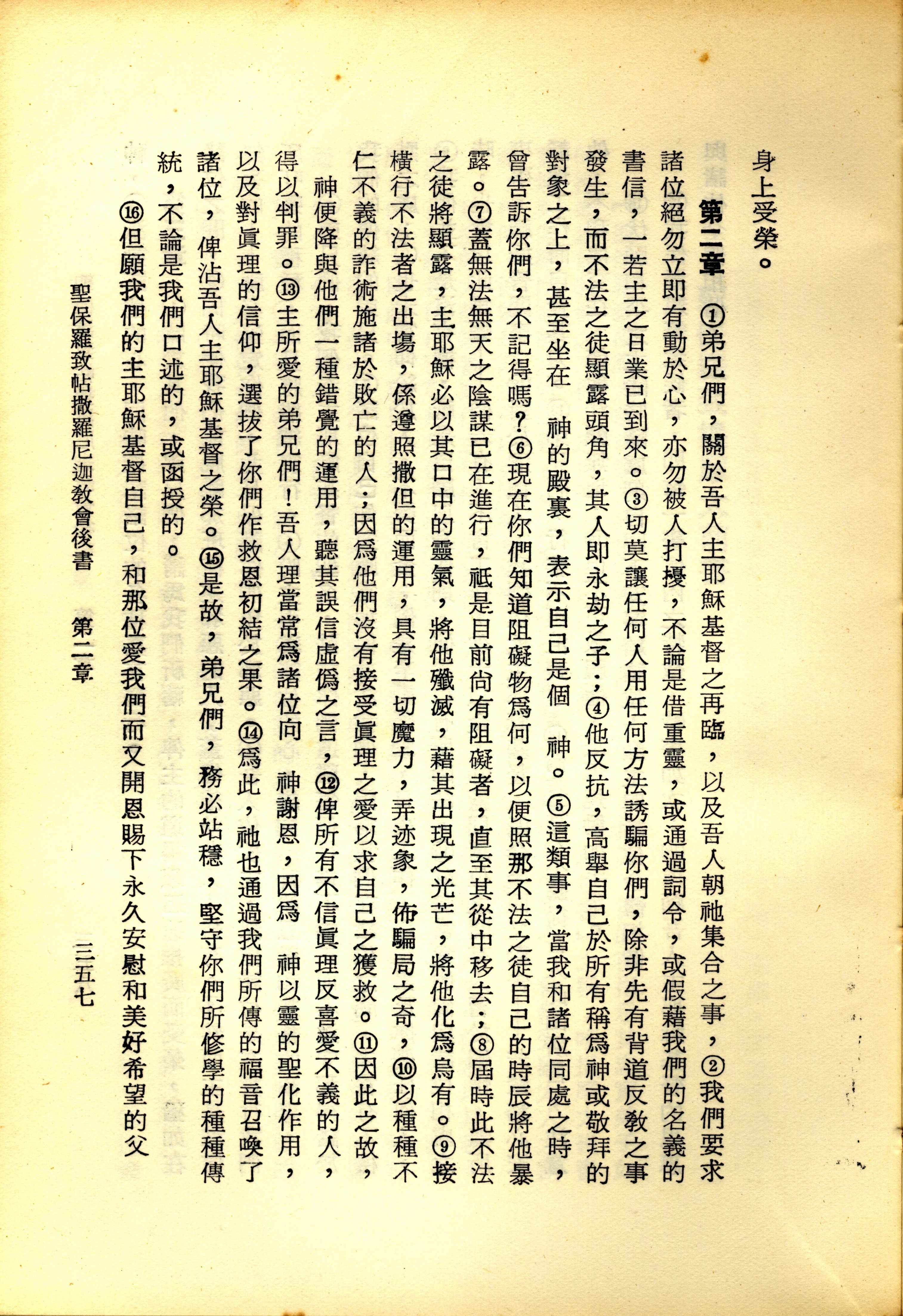 1967年新譯新約全集 帖撒羅尼迦後書 2 章 1 節到 2 章 16 節