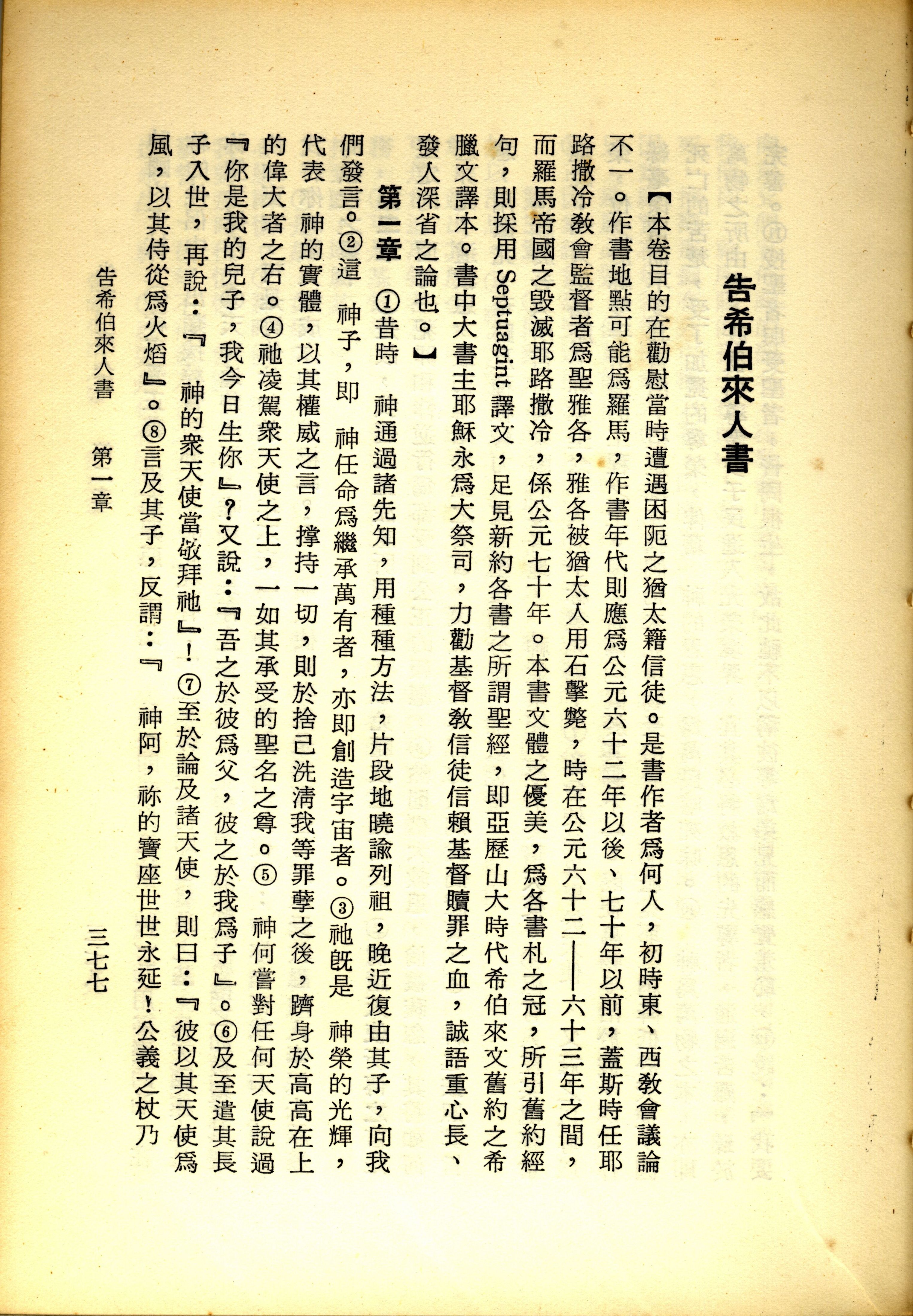1967年新譯新約全集 希伯來書 1 章 1 節到 1 章 8 節