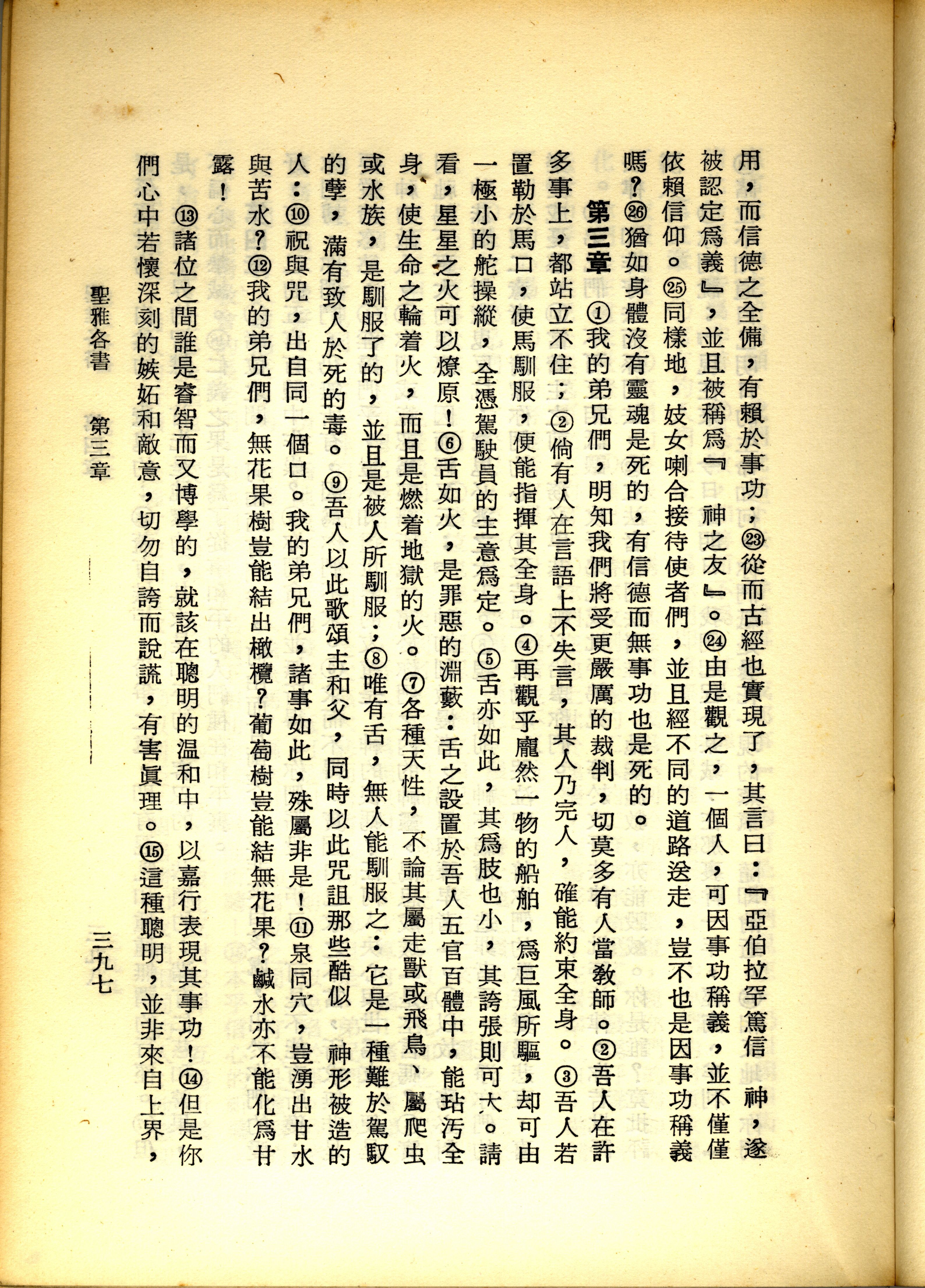 1967年新譯新約全集 雅各書 2 章 23 節到 3 章 15 節