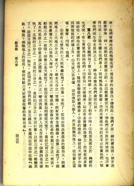 1967年新譯新約全集 啟示錄 7 章 15 節到 8 章 13 節