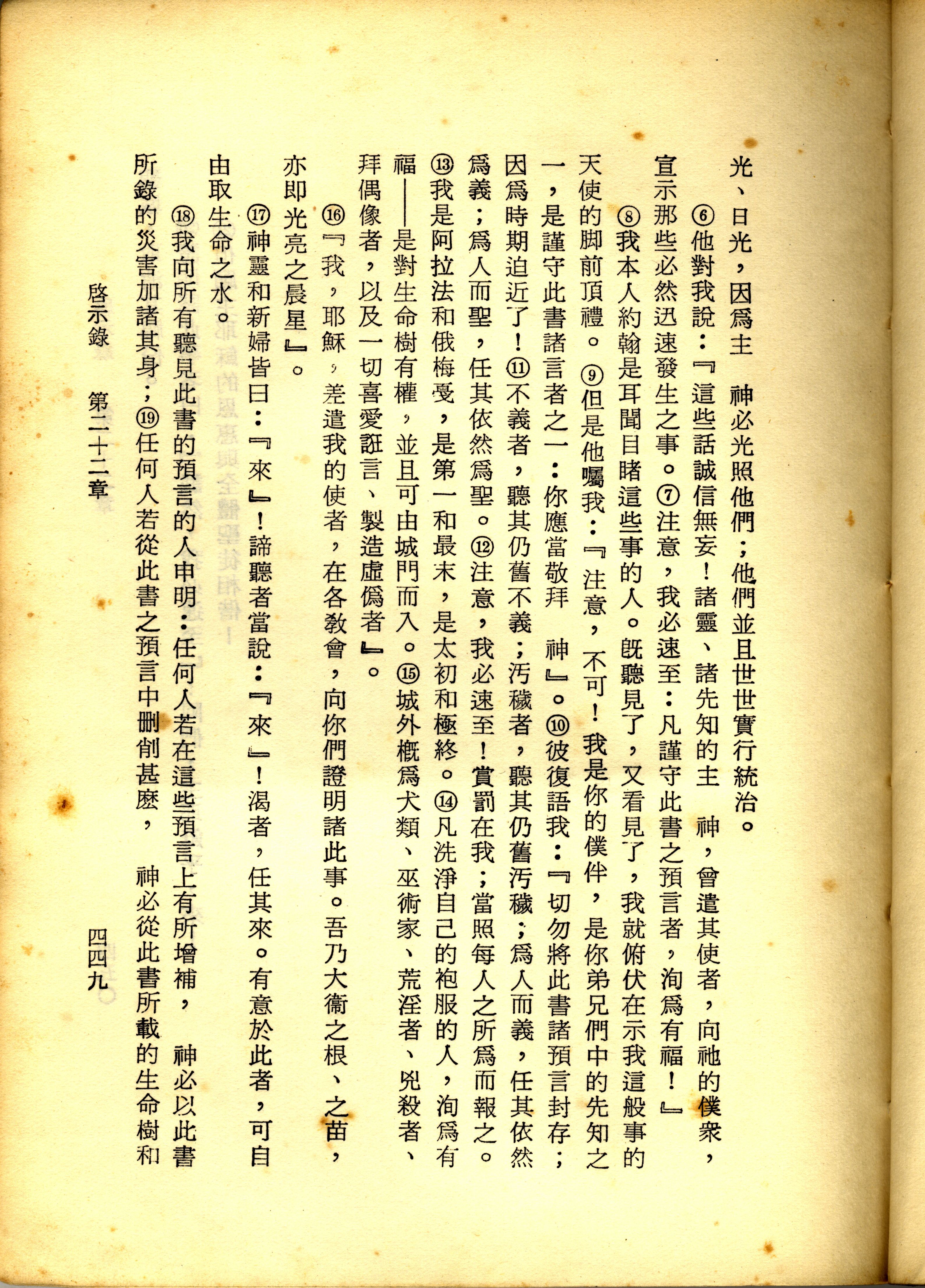 1967年新譯新約全集 啟示錄 22 章 6 節到 22 章 19 節