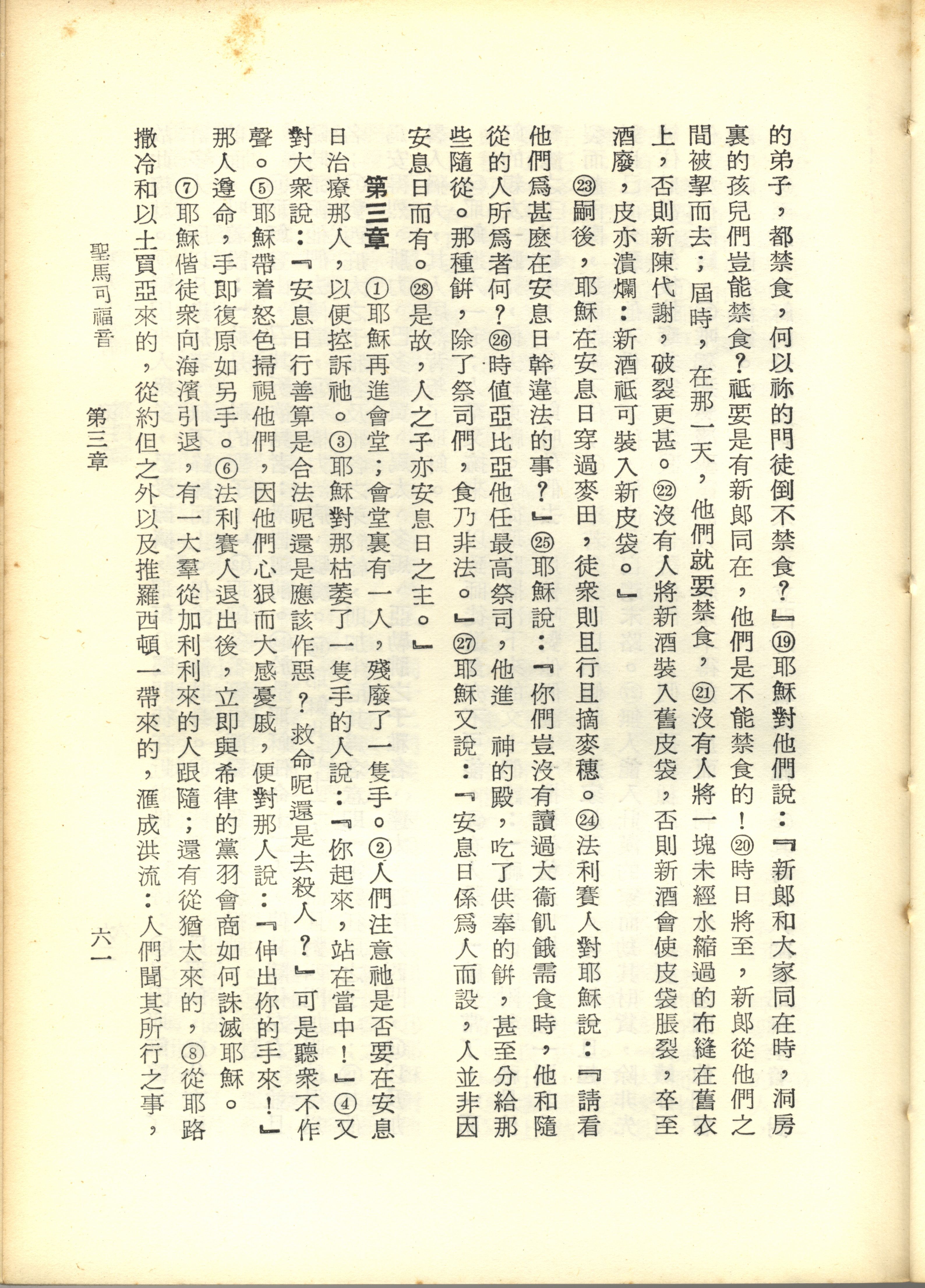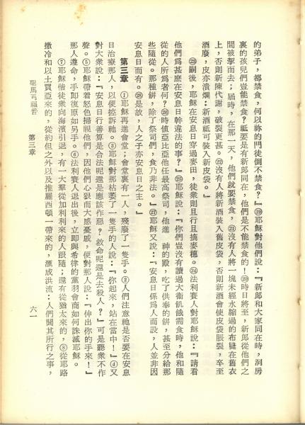 1967年新譯新約全集 馬可福音 2 章 19 節到 3 章 8 節
