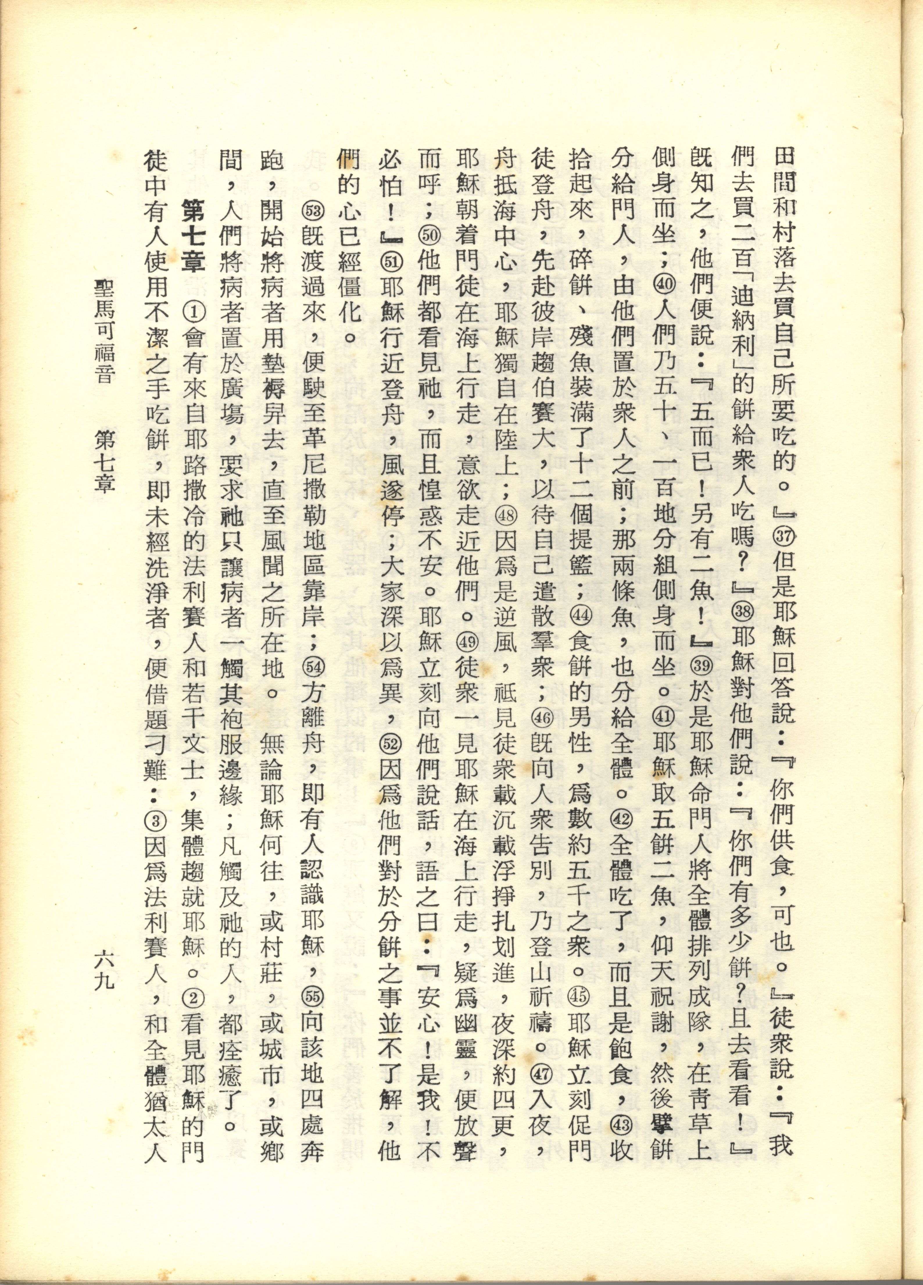1967年新譯新約全集 馬可福音 6 章 37 節到 7 章 3 節