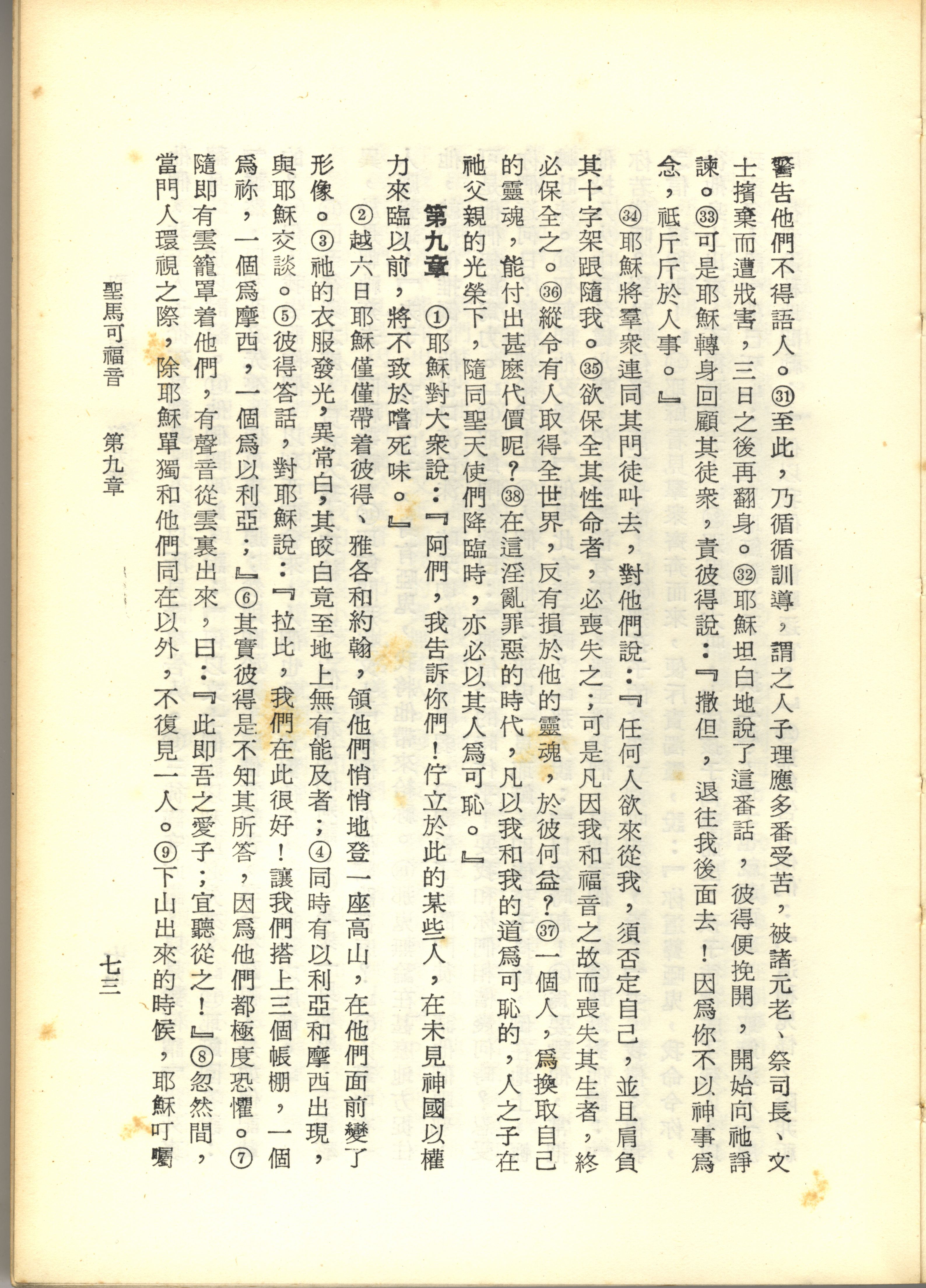 1967年新譯新約全集 馬可福音 8 章 31 節到 9 章 9 節