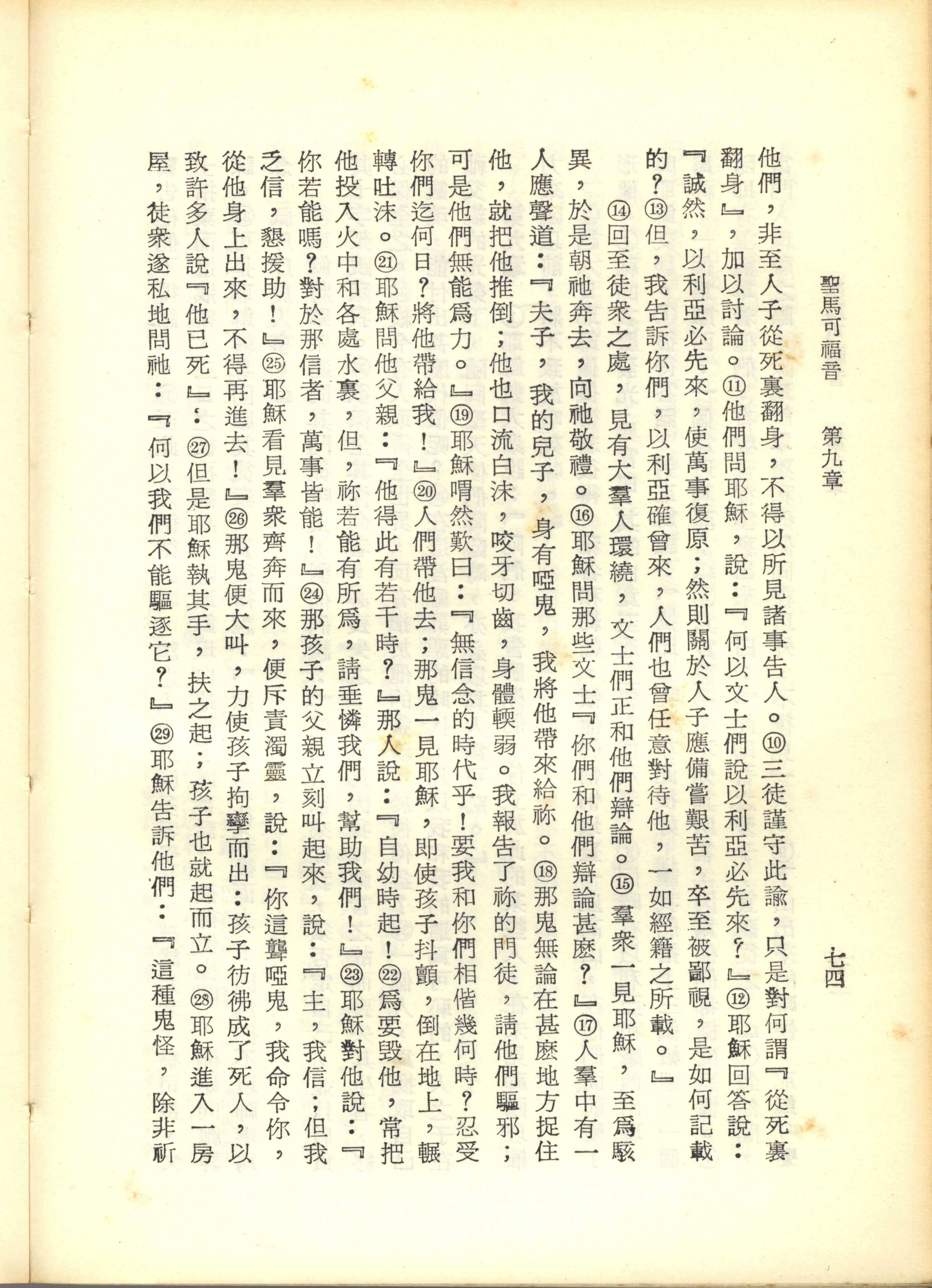 1967年新譯新約全集 馬可福音 9 章 10 節到 9 章 29 節