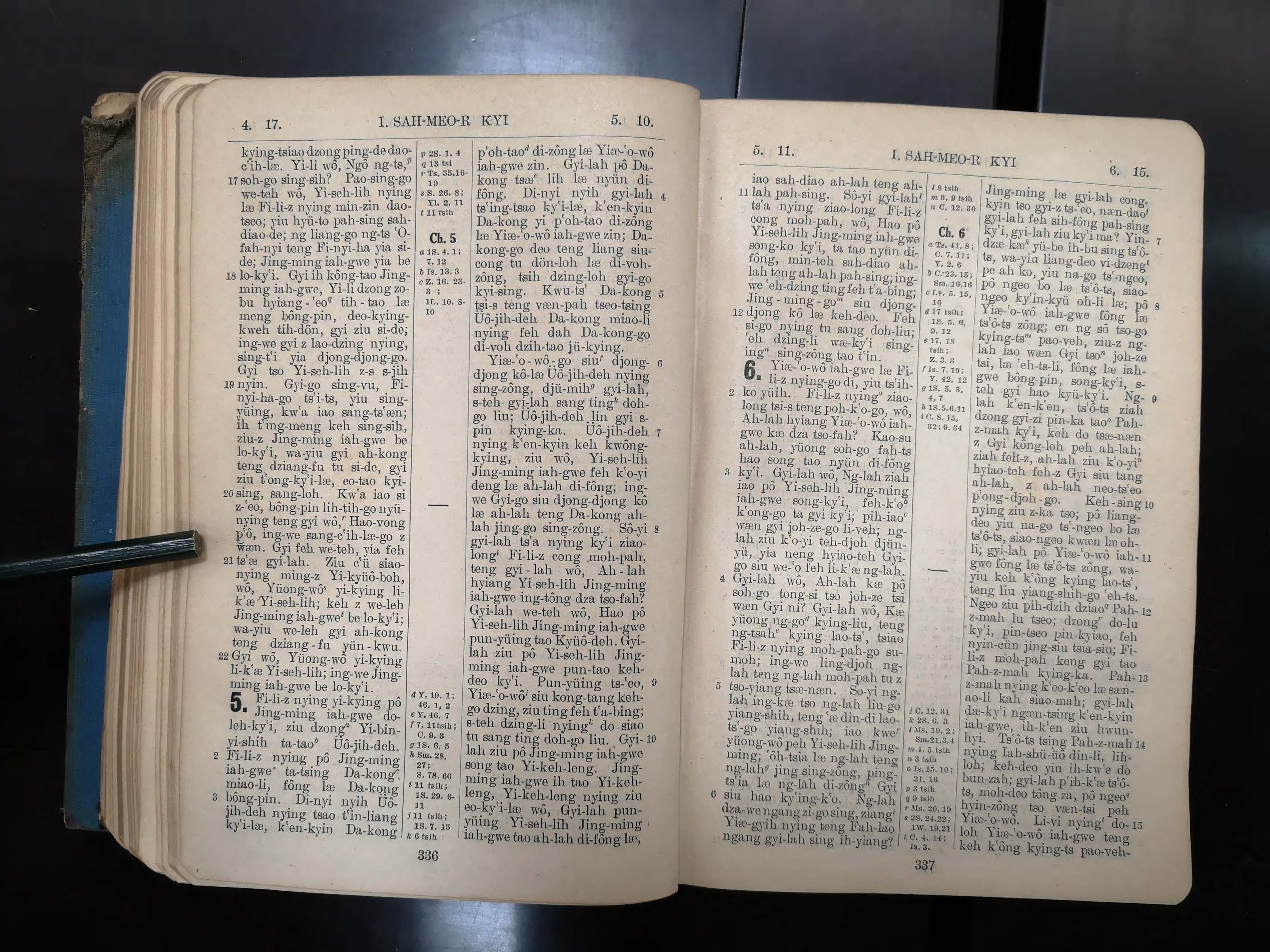 1923年寧波話羅馬字舊約全書 撒母耳記上 4 章 17 節到 6 章 15 節