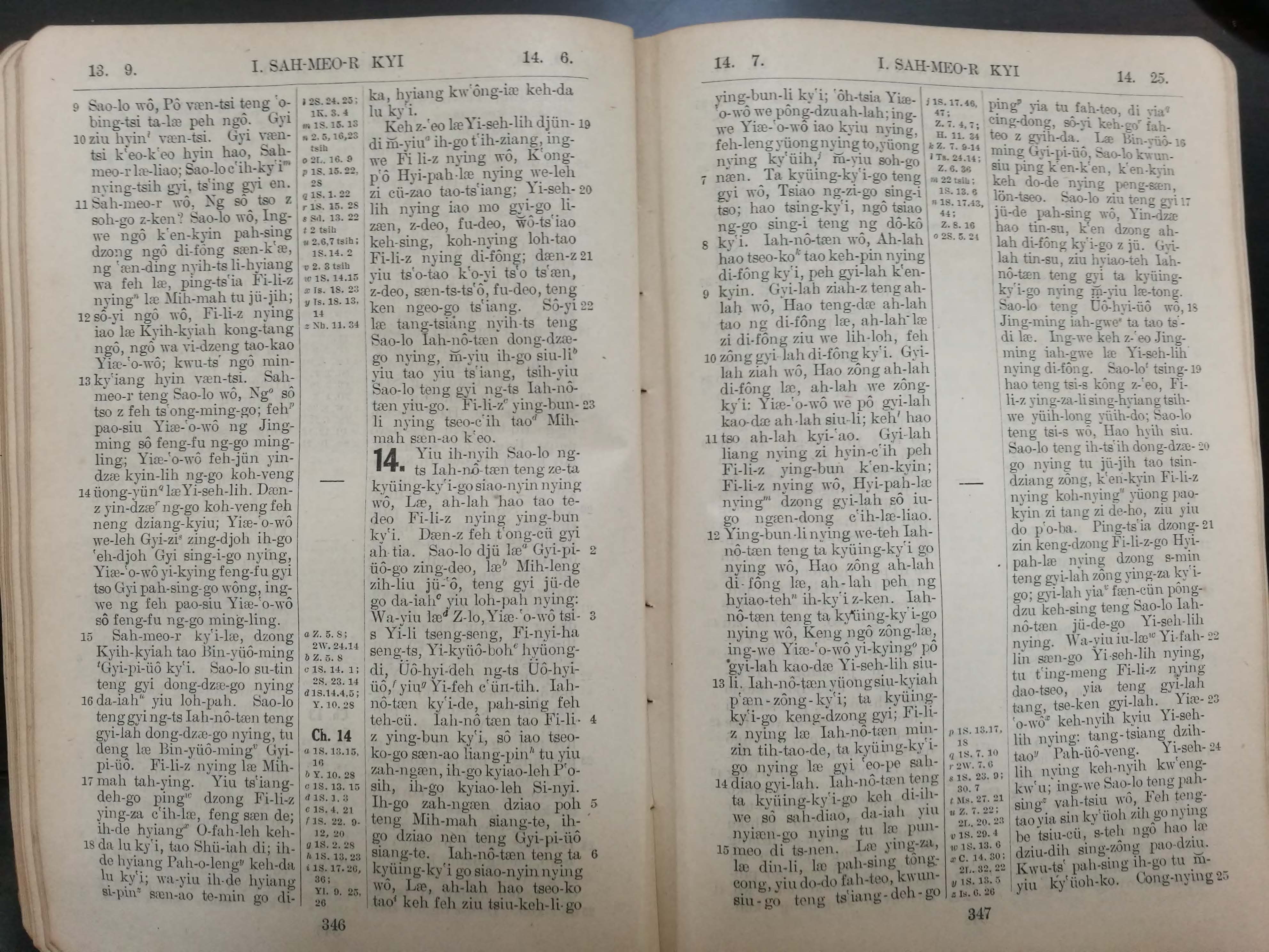 1923年寧波話羅馬字舊約全書 撒母耳記上 13 章 9 節到 14 章 25 節