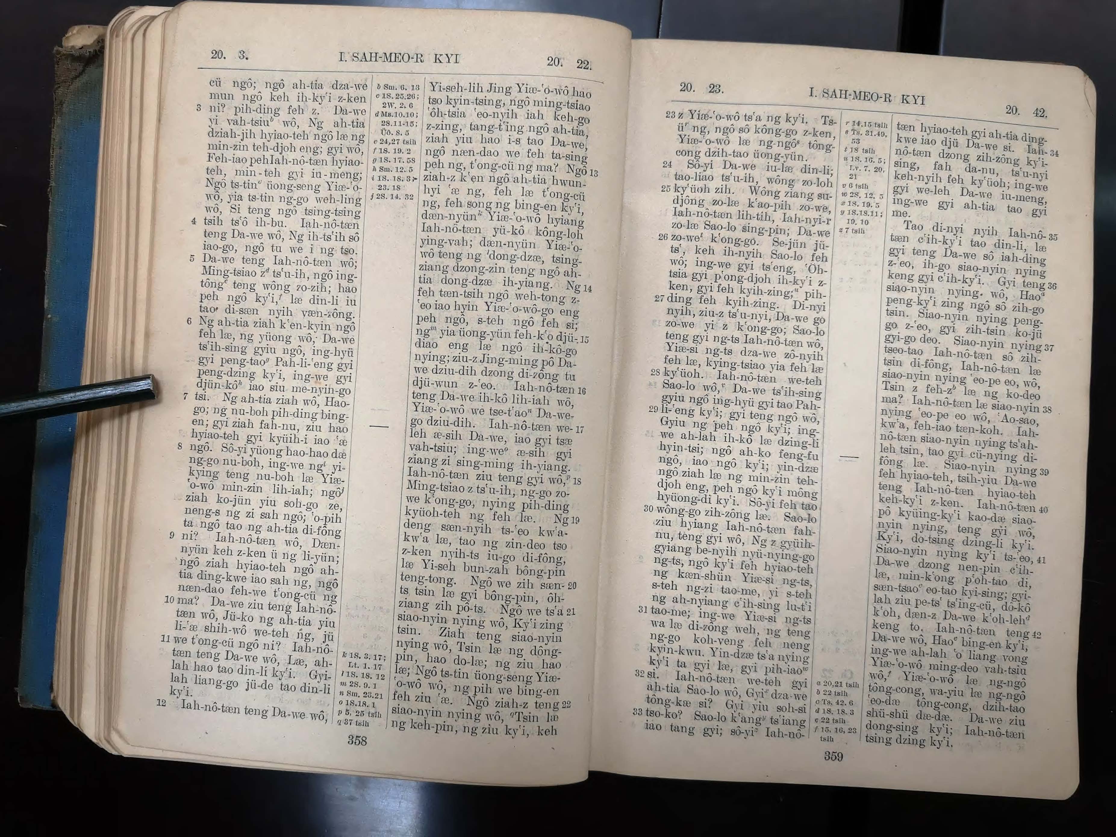 1923年寧波話羅馬字舊約全書 撒母耳記上 20 章 3 節到 20 章 42 節