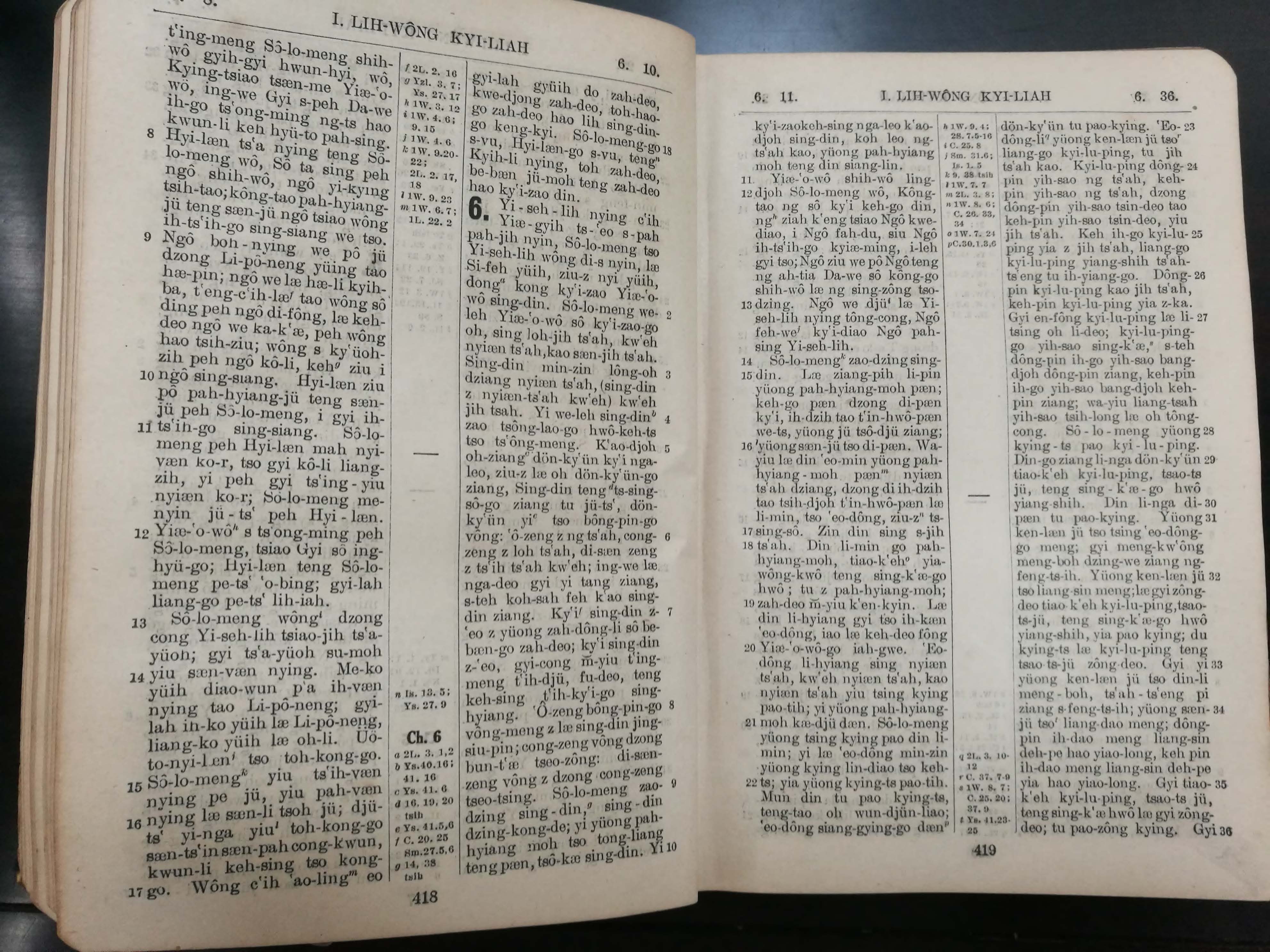1923年寧波話羅馬字舊約全書 列王紀上 5 章 8 節到 6 章 36 節
