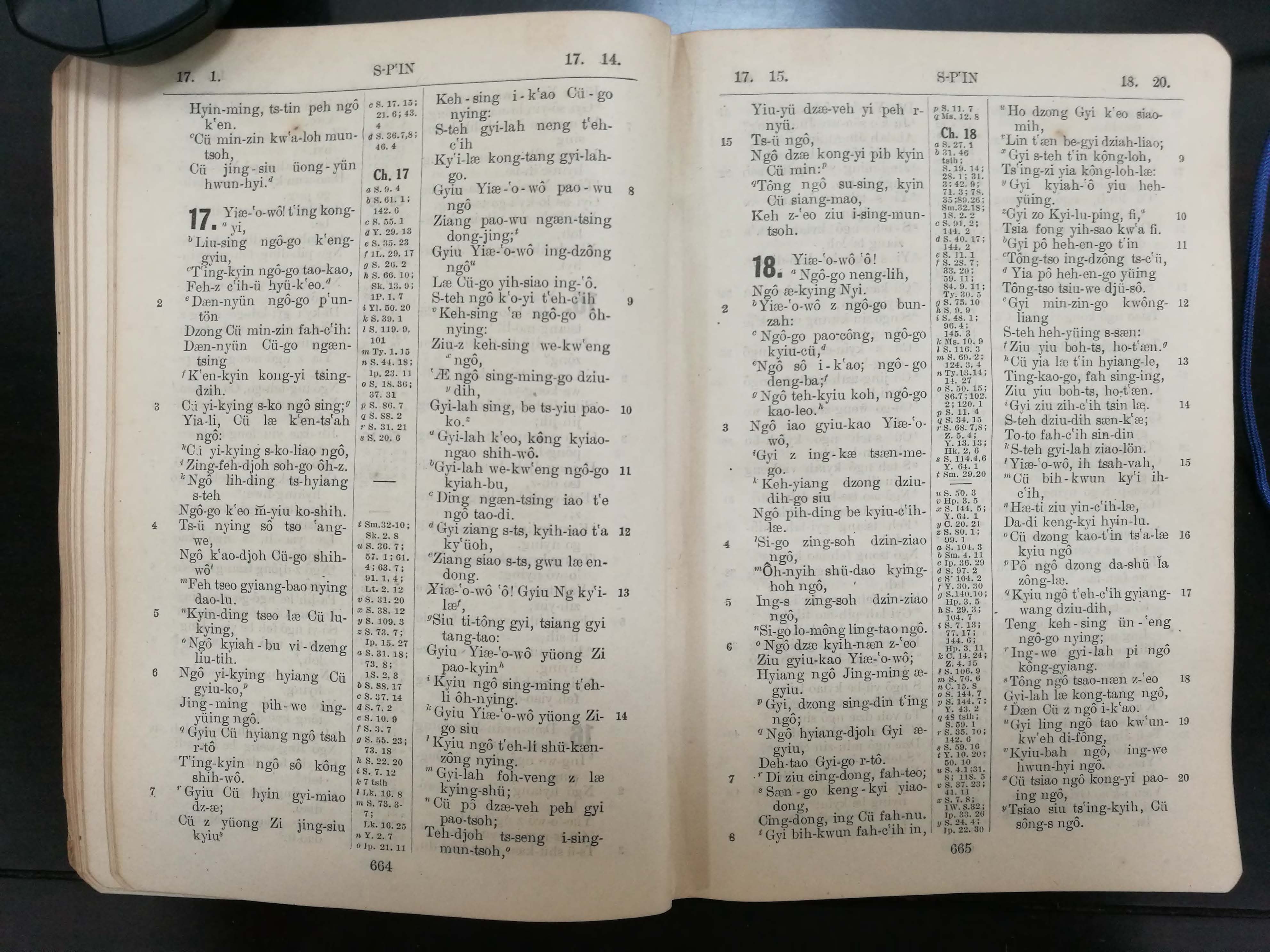 1923年寧波話羅馬字舊約全書 詩篇 17 章 1 節到 18 章 20 節