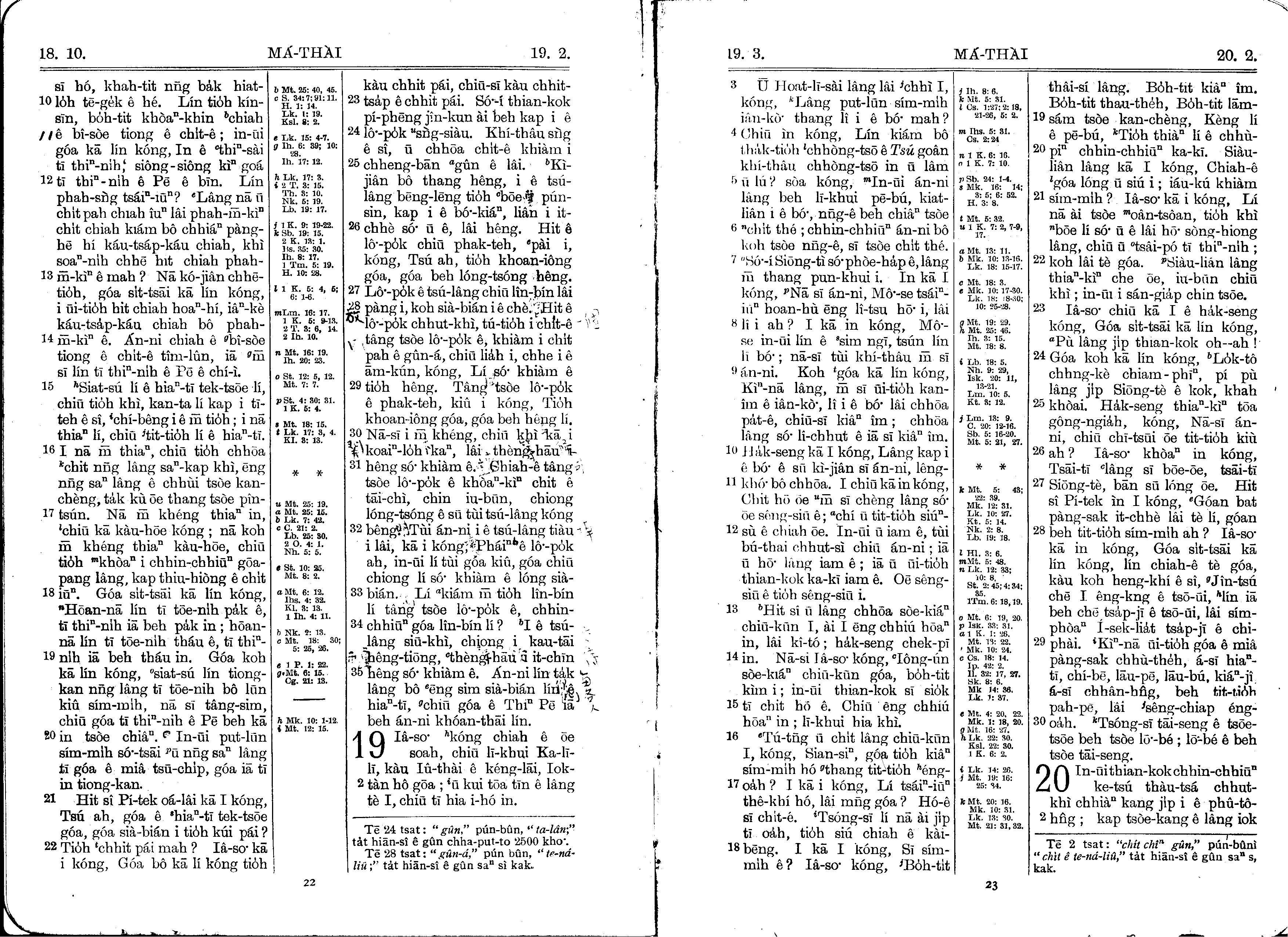 1930年馬雅各舊約全書+巴克禮新約全書 馬太福音 18 章 10 節到 20 章 2 節