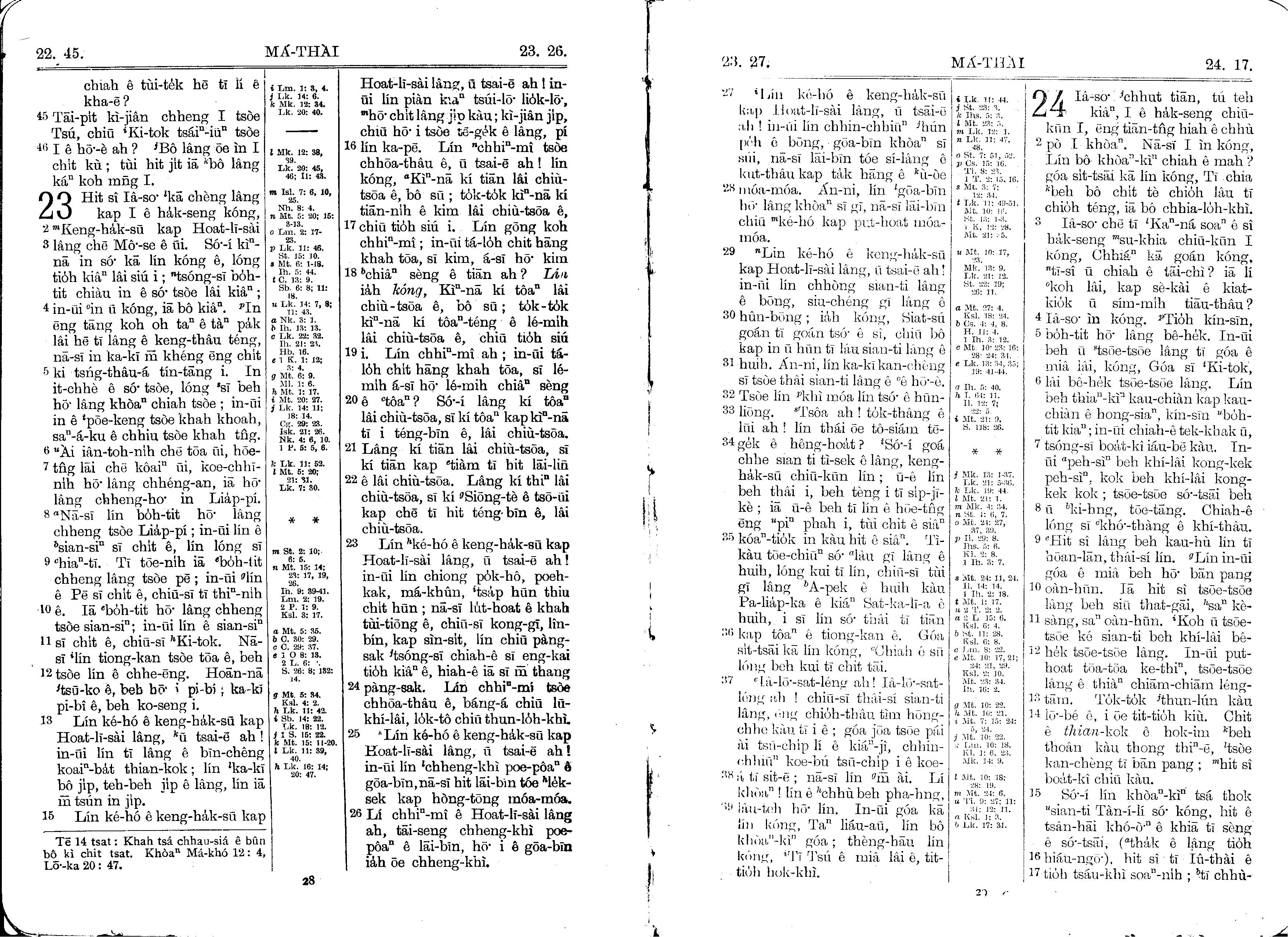 1930年馬雅各舊約全書+巴克禮新約全書 馬太福音 22 章 45 節到 24 章 17 節